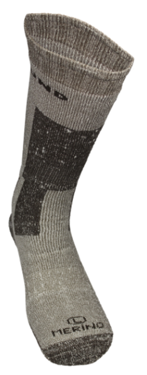 Chaussette thermique de trekking / randonnée d'hiver en laine mérinos, avec double boucle sur tout le pied. Bande élastique pour un meilleur maintien du pied et talon et pointe renforcés pour éviter les mouvements du vêtement pendant l'exercice.