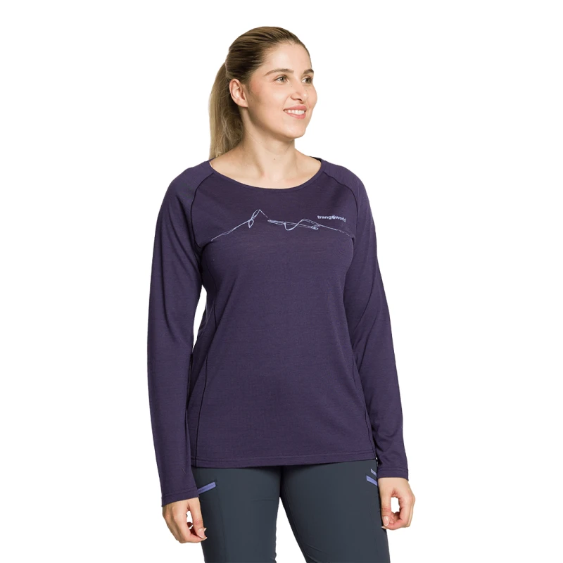iva incl.T-shirt technique femme à manches longues avec col rond et manche ringlán, en tissu de laine mérinos.