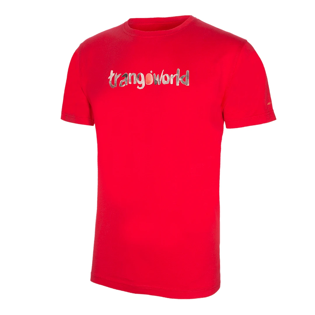 T-shirt pour homme en coton biologique avec le logo Trangoworld à l'aquarelle conçu par Ricardo Montoro.