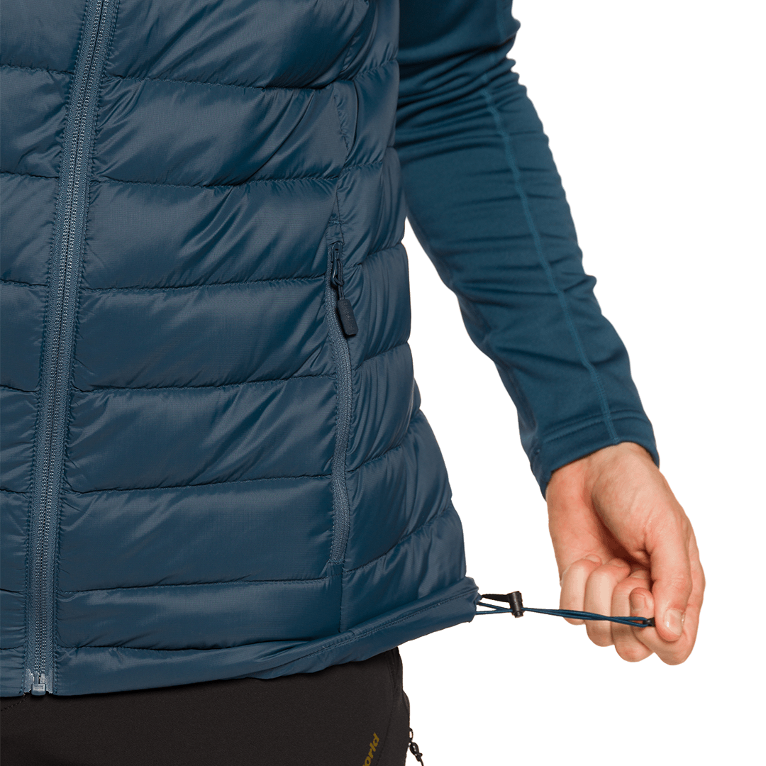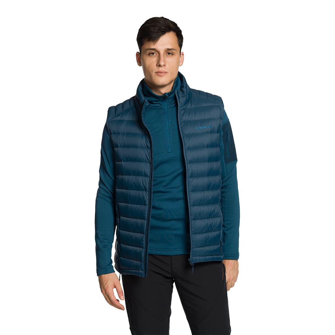 iva incl.Gilet technique pour homme en polyester imperméable au duvet, garni de duvet de canard 90/10 600 CUINS, à utiliser comme deuxième couche lors d'activités hivernales.