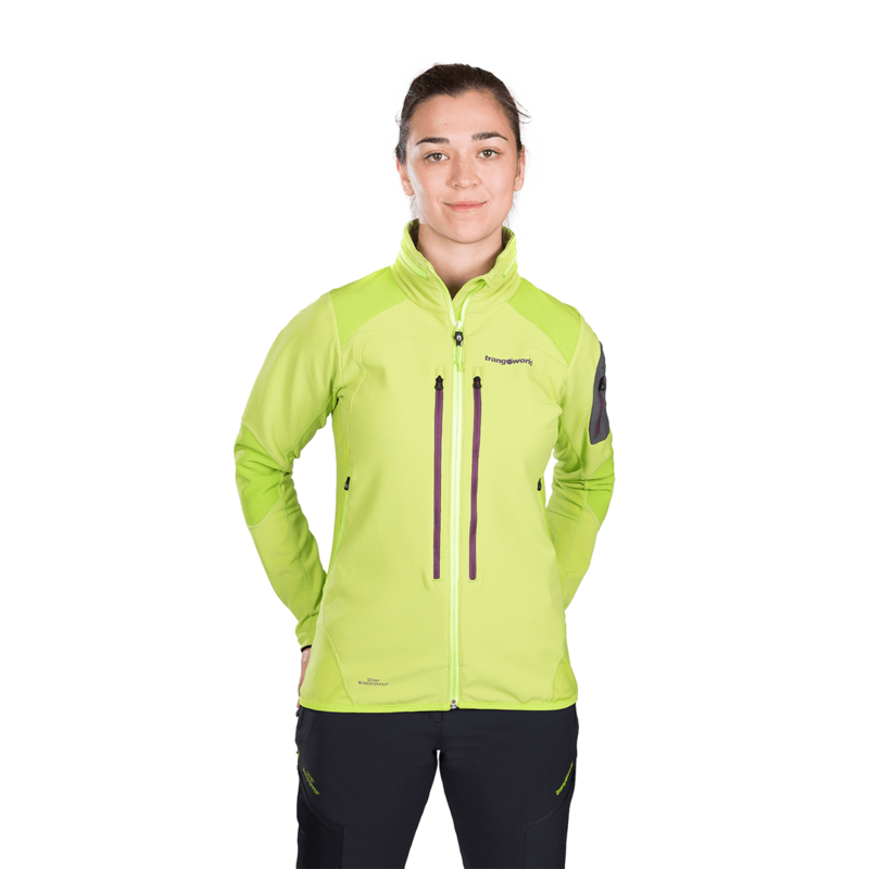 Technique pour les femmes idéale pour le ski de montagne en combinaison parfaite avec Trangoworld Slaggard. Coupeurs, élastiques, résistants et en tissu WindStopper 3L et polyester biélastique.
