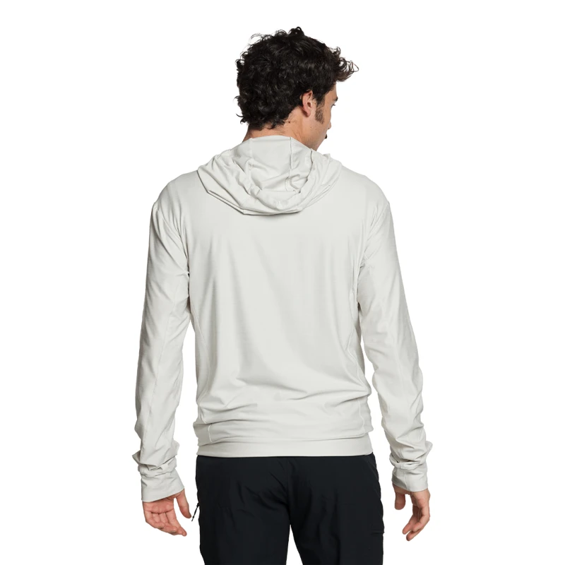 Capuche fixe ajustée avec élastique.