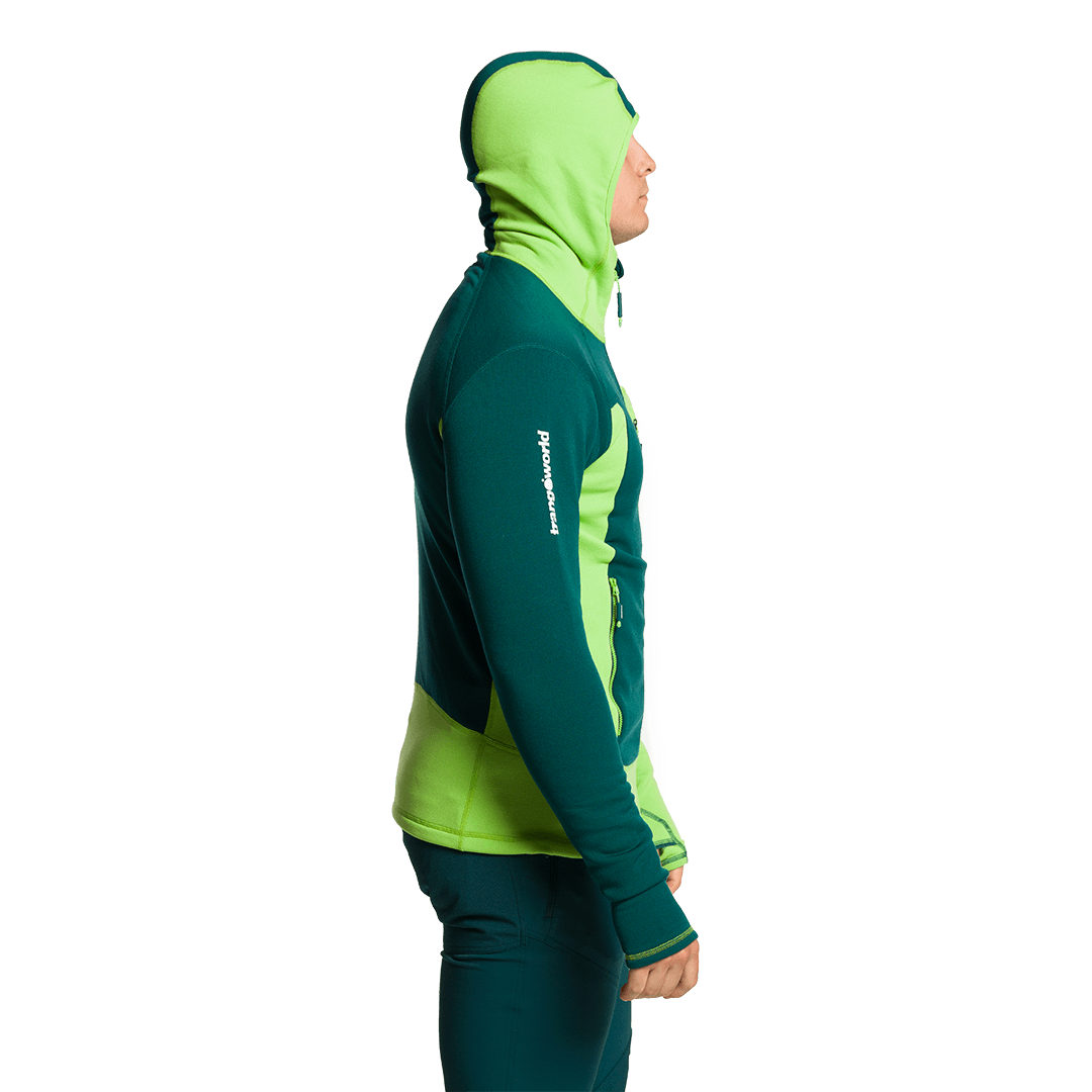 Grande adaptabilité au corps, idéal comme couche intermédiaire ou extérieure pour la montagne, l'escalade et la randonnée.