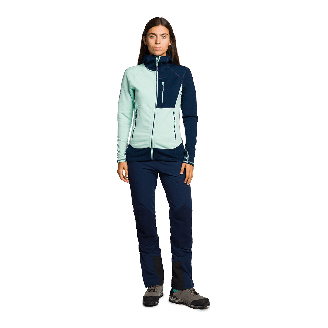 Excellente adaptabilité au corps, idéale comme couche intermédiaire ou extérieure pour l'alpinisme, l'escalade et la randonnée.
