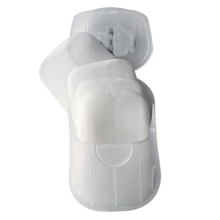 Le nouveau savon de poche est un petit cajita en plastique avec 50 fines lames de savon solide pur.