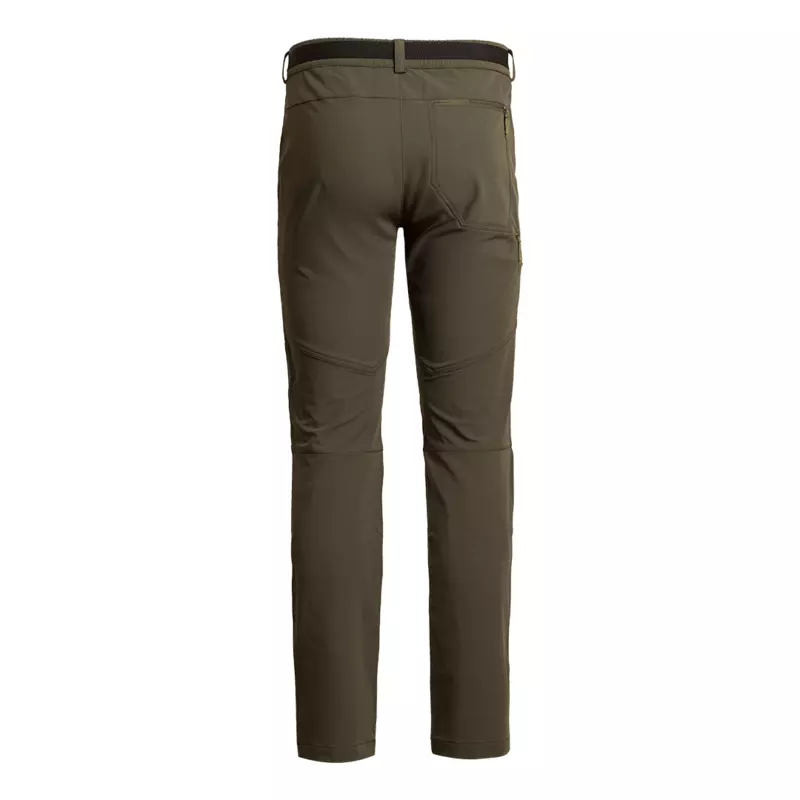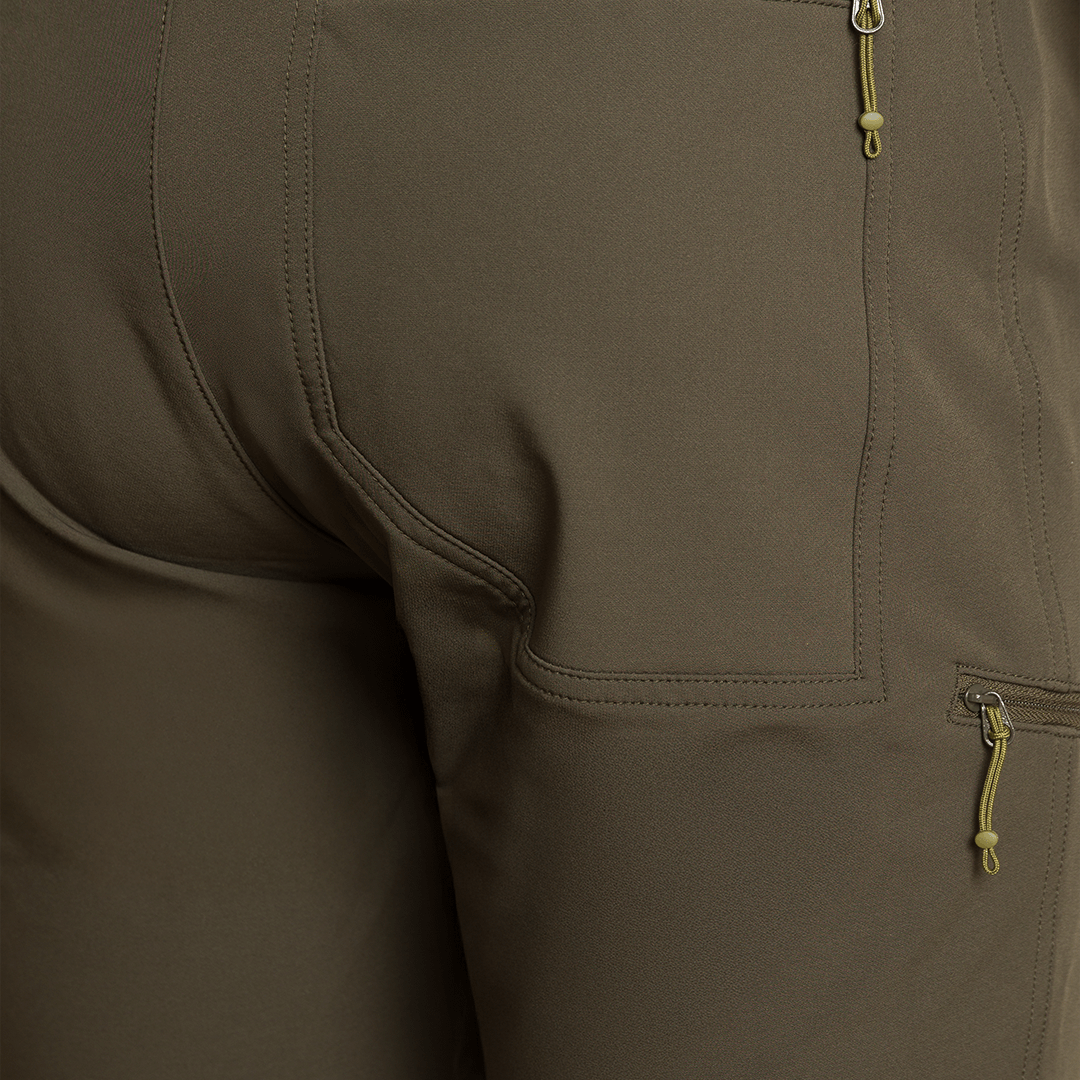 Taille élastique avec ceinture, genoux profilés et multiples poches zippées.