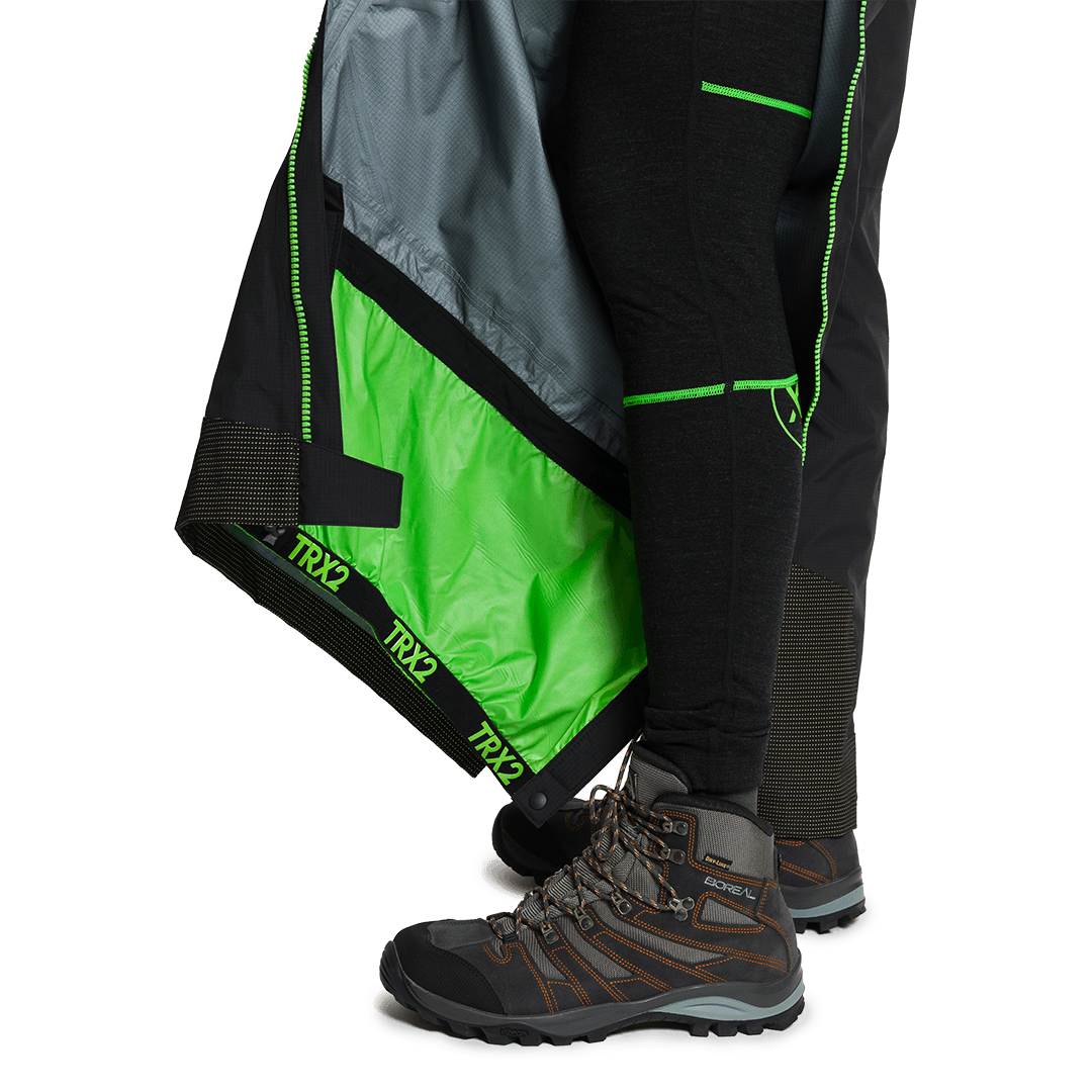 Imperméable avec une colonne d'eau de 28 000 mm, respirant, avec renforts et fermetures éclair sur toute la longueur.