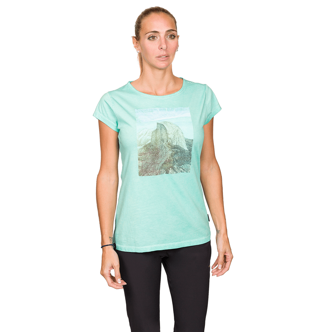 Chemise femme à manches courtes en coton biologique pour bloc, escalade ou utilisation urbaine.