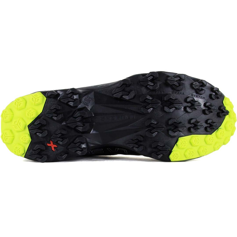 Le FriXion XT mix double face suela équipe la solution exclusive Trail RockerTM qui favorise le soutien naturel du talon externe au punther zapatilla interne pendant la course. La partie talon et le punter sont renforcés avec le caoutchouc XT le plus résistant et durable. Nouvellement piquée qui apporte des prises supplémentaires aux bas.